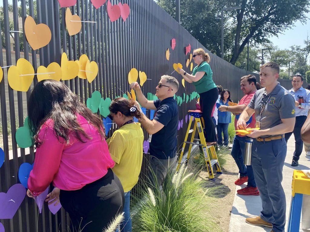 Al final, personal del Consulado e integrantes del comité, colocaron corazones de colores en la reja del consulado, para formar la bandera gay, y también pintaron el pavimento con los característicos colores.